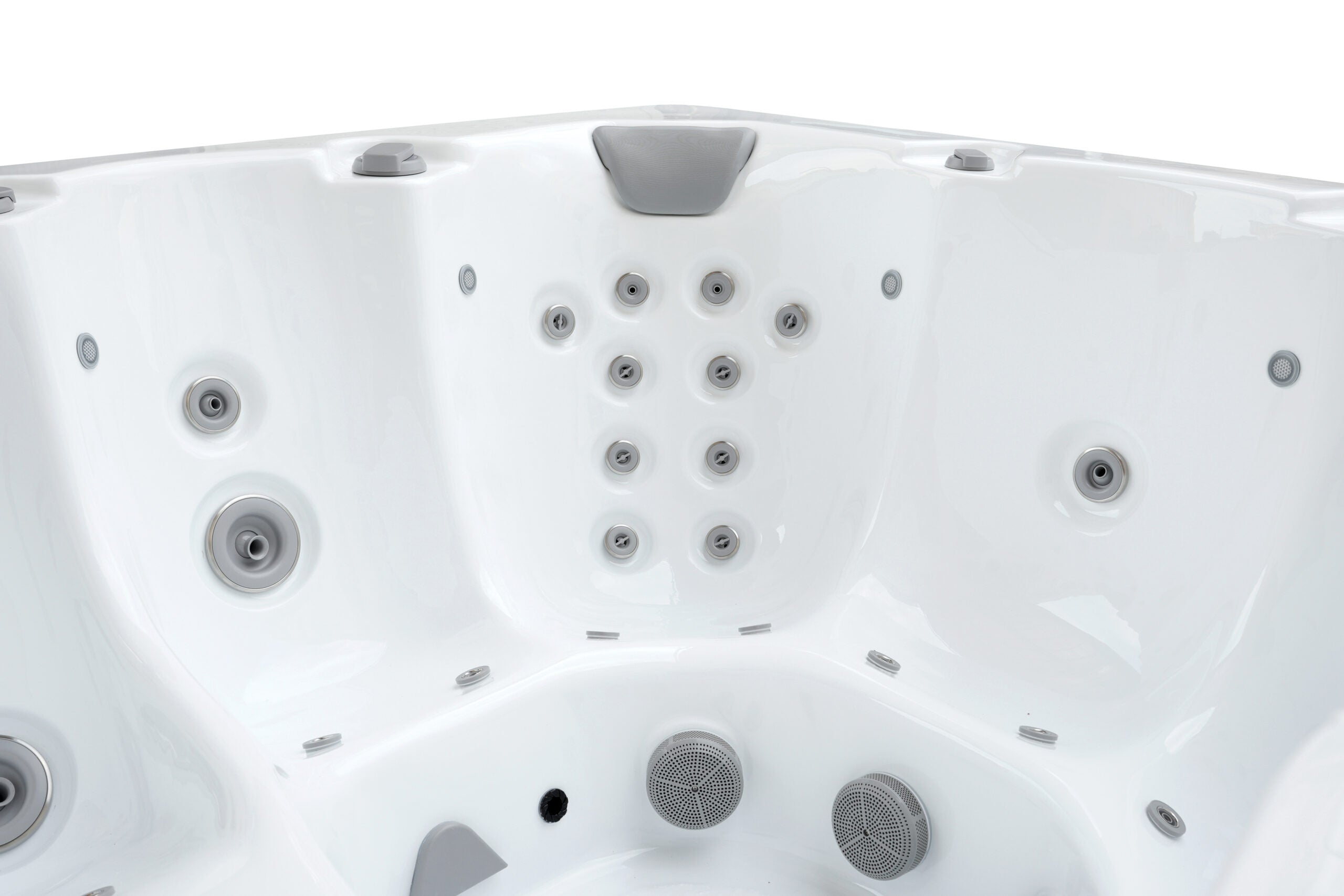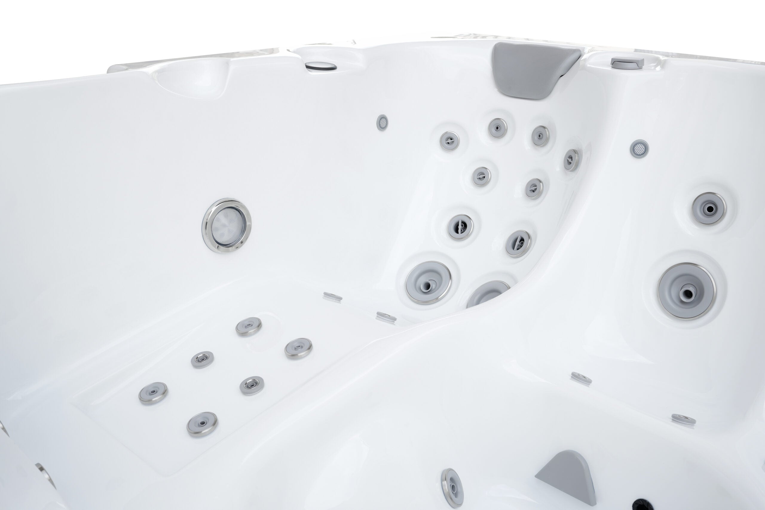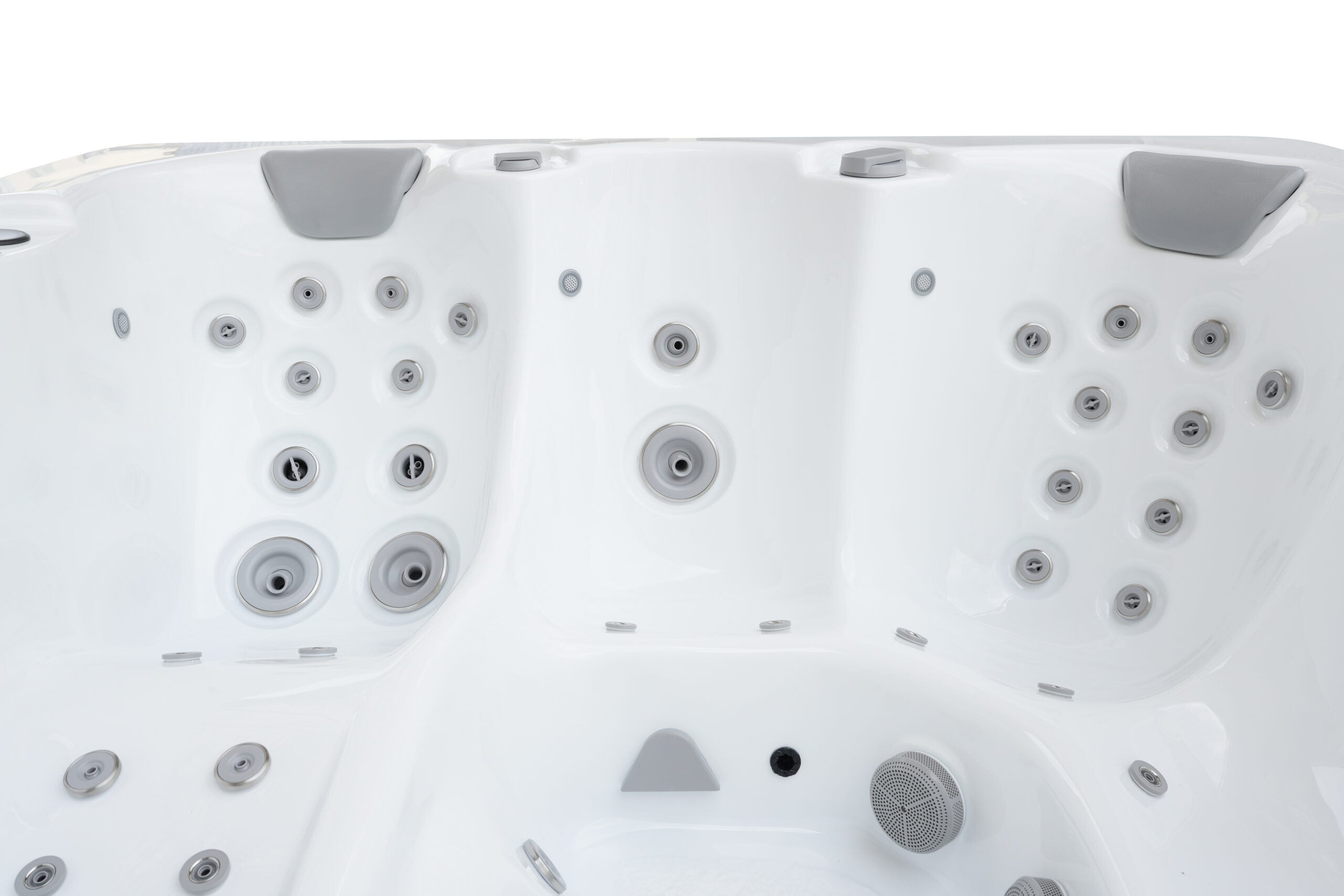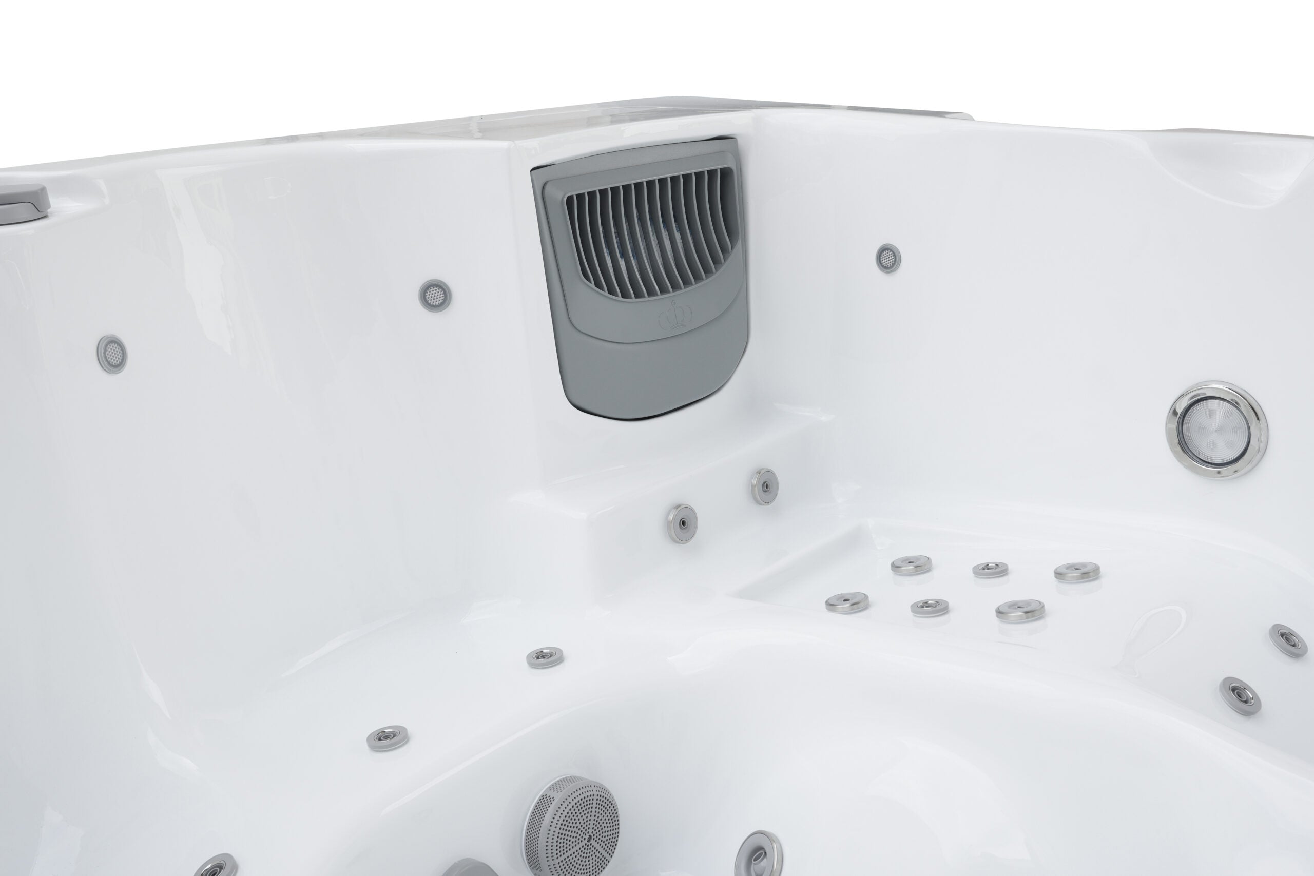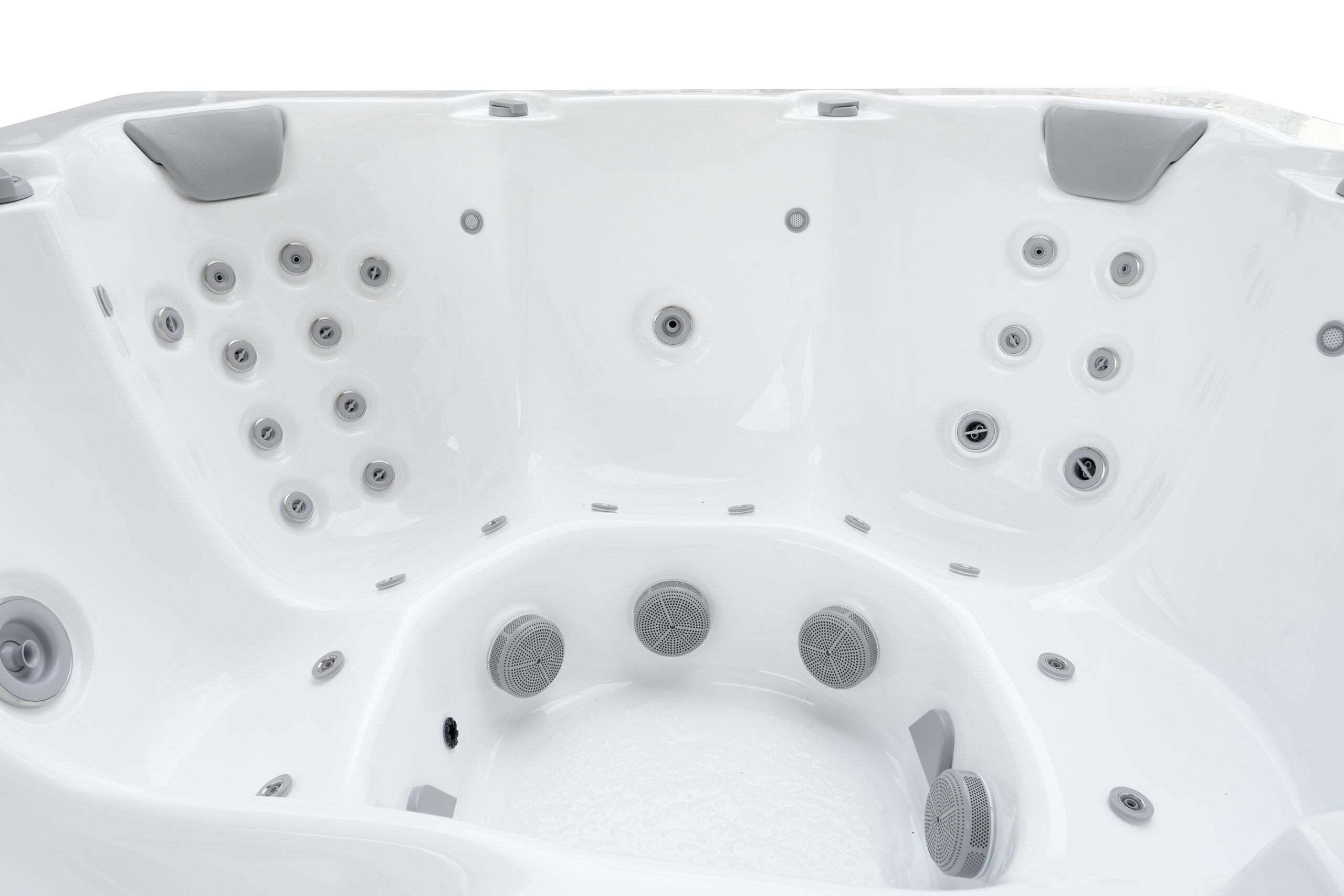Skare är vårt minsta spabad, men en klar aspirant på att bli störst när det gäller popularitet. Designad med skandinavisk minimalism i åtanke, finns det plats för hela familjen att bada tillsammans. Den som är först i plurret kan sträcka ut sig i den bekväma liggplatsen medan de andra fem njuter av härlig massage i sittande läge. Perfekt för kalla nordiska kvällar, omgiven av naturens skönhet.