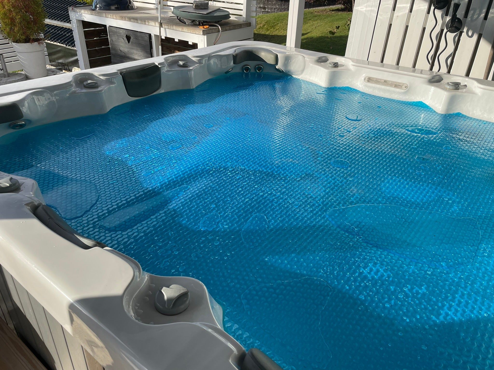 Spar energi med ett värmeskydd till spabad. Läggs på ytan under locket.